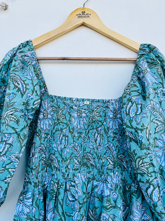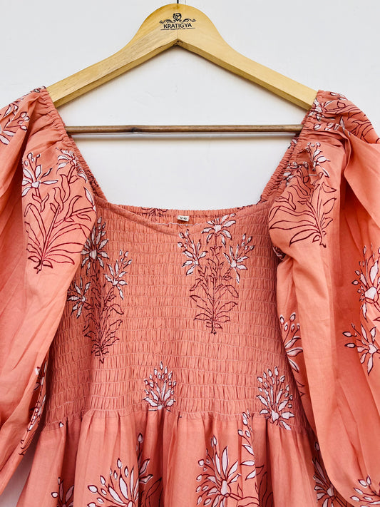 Cotton Maxi Dress | Hand Block Printed Maxi | Floral Long Dress | Smocked Maxi Dress