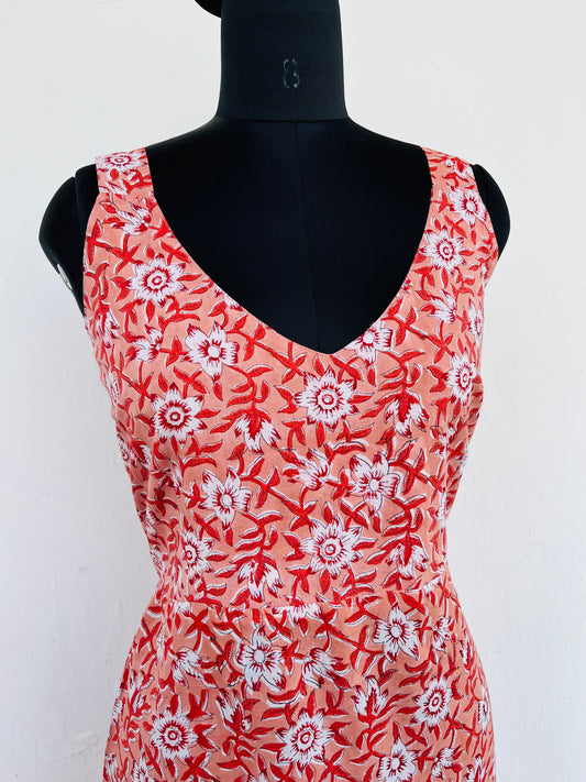 Cotton long dress | hand block print maxi | floral gown | unique back design dress