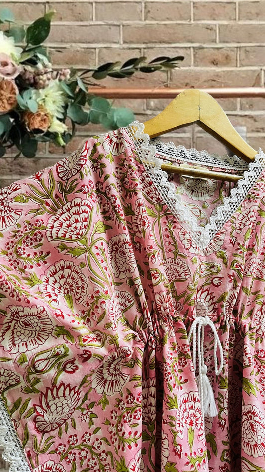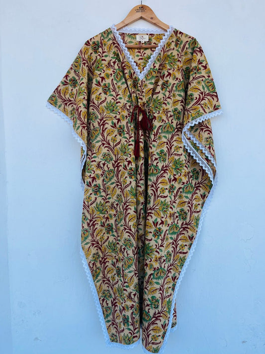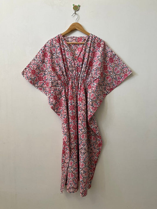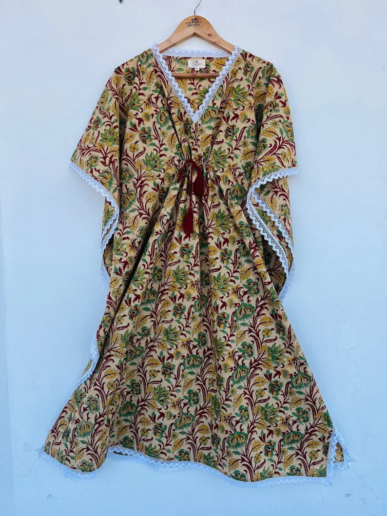 Floral printed kaftan | beachwear dress | hand block print cotton kaftan | women's cover-ups