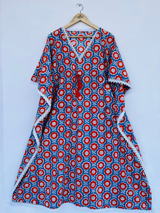 Red Comfy kaftan dress | Hand block printed kaftan | kaftan dress | Indian cotton kaftan maxi
