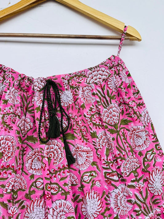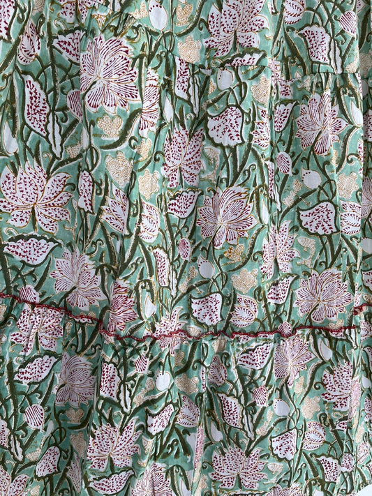 Cotton Skirt, Floral Hand Block Printed Skirts, Long Skirt with String