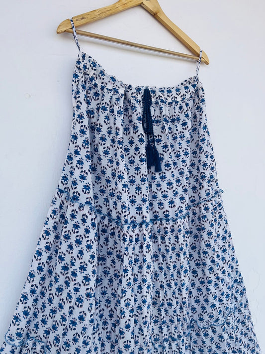 Blue Floral printed kaftan | blue floral beachwear dress | hand block print cotton kaftan | women's cover-ups