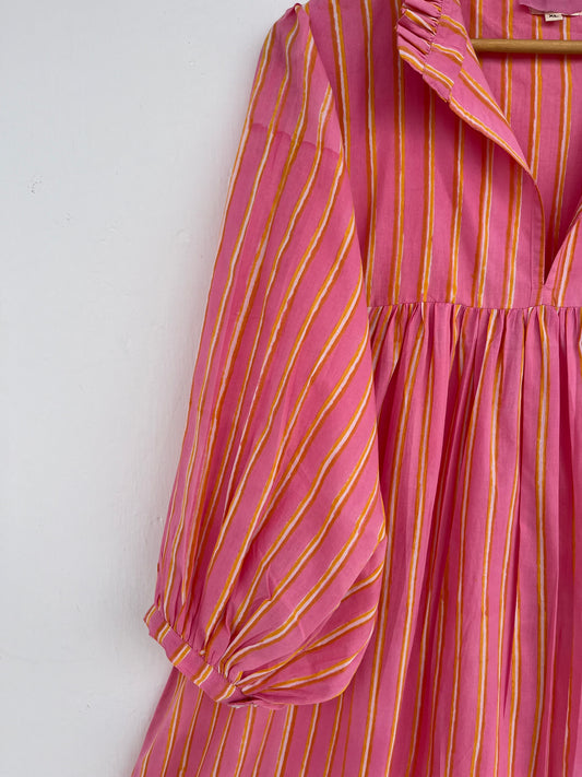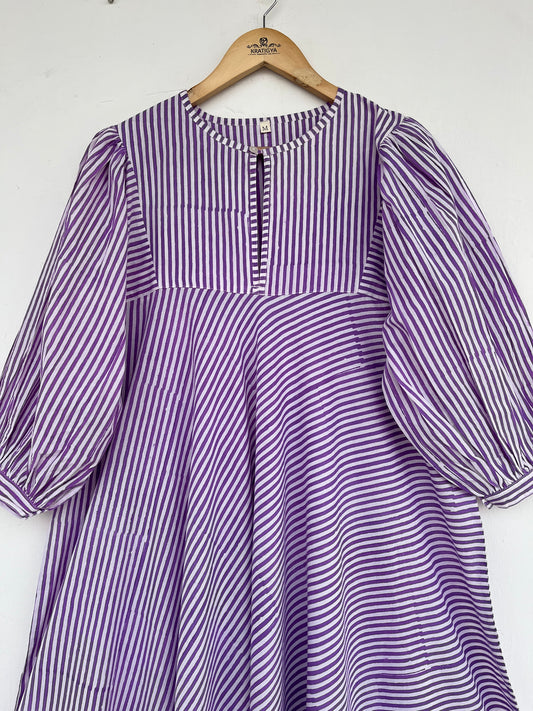 Purple Striped Modest Long Maxi Dress | Indian Cotton Tiered Loose Fit Dress