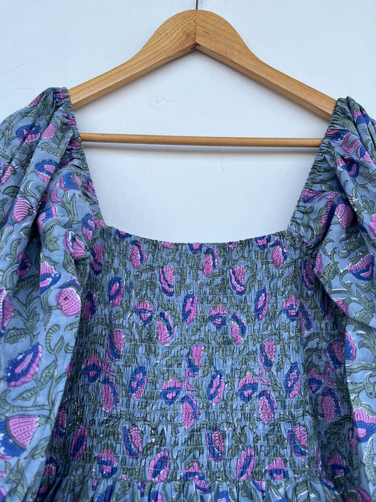 Block Print Handmade Summer Dress | Smocked Bodice Floral Dress for Women