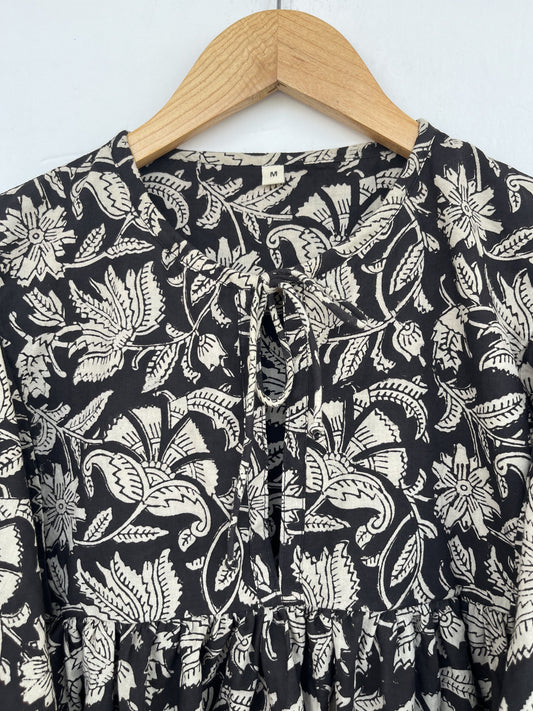 Black Floral Pure Cotton Maxi Dress | Handcrafted Vintage Dress | Slow Fashion Outfit