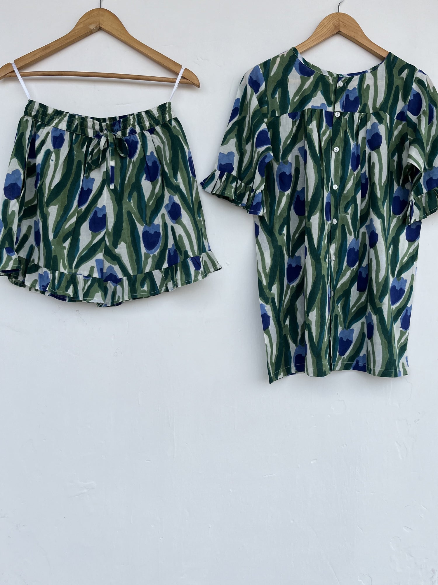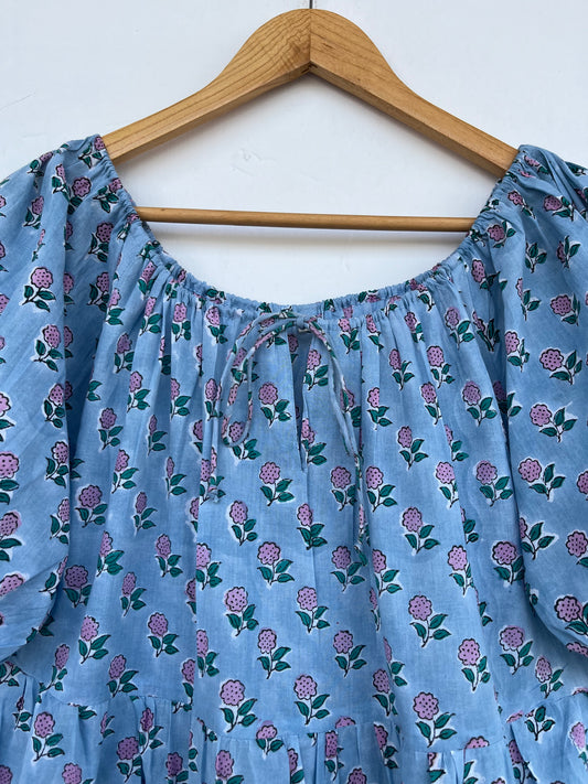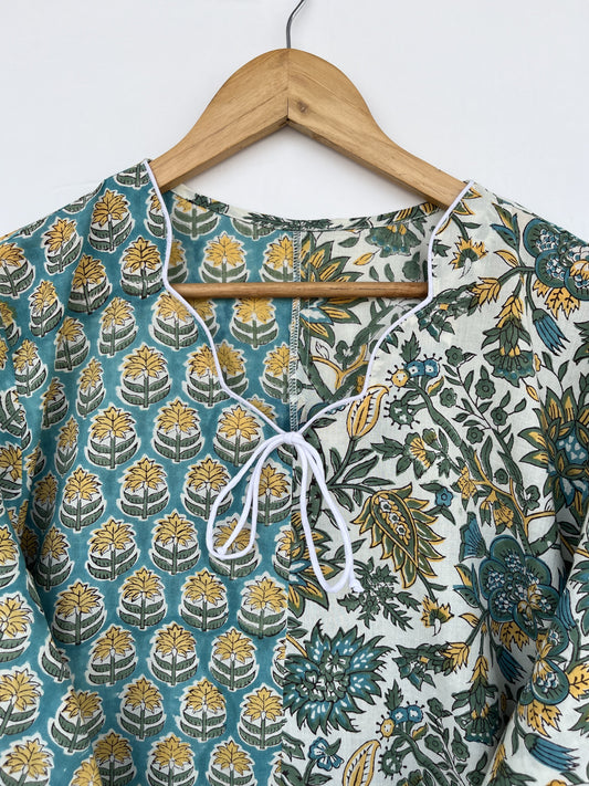 Blue Floral printed kaftan | blue floral beachwear dress | hand block print cotton kaftan | women's cover-ups