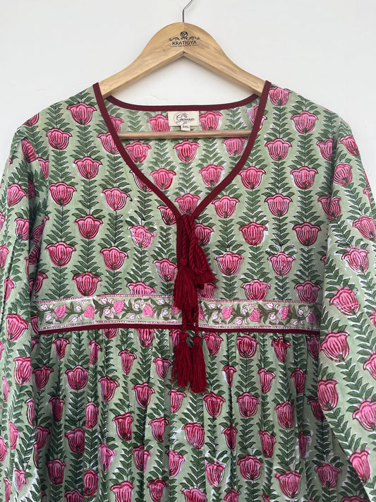 Red Comfy kaftan dress | Hand block printed kaftan | kaftan dress | Indian cotton kaftan maxi