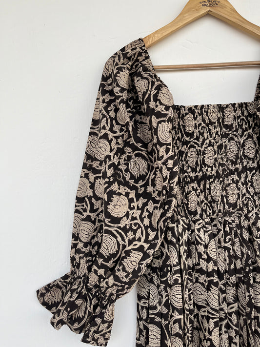 Cotton Maxi Dress | Hand Block Printed Maxi | Floral Long Dress | Smocked Maxi Dress