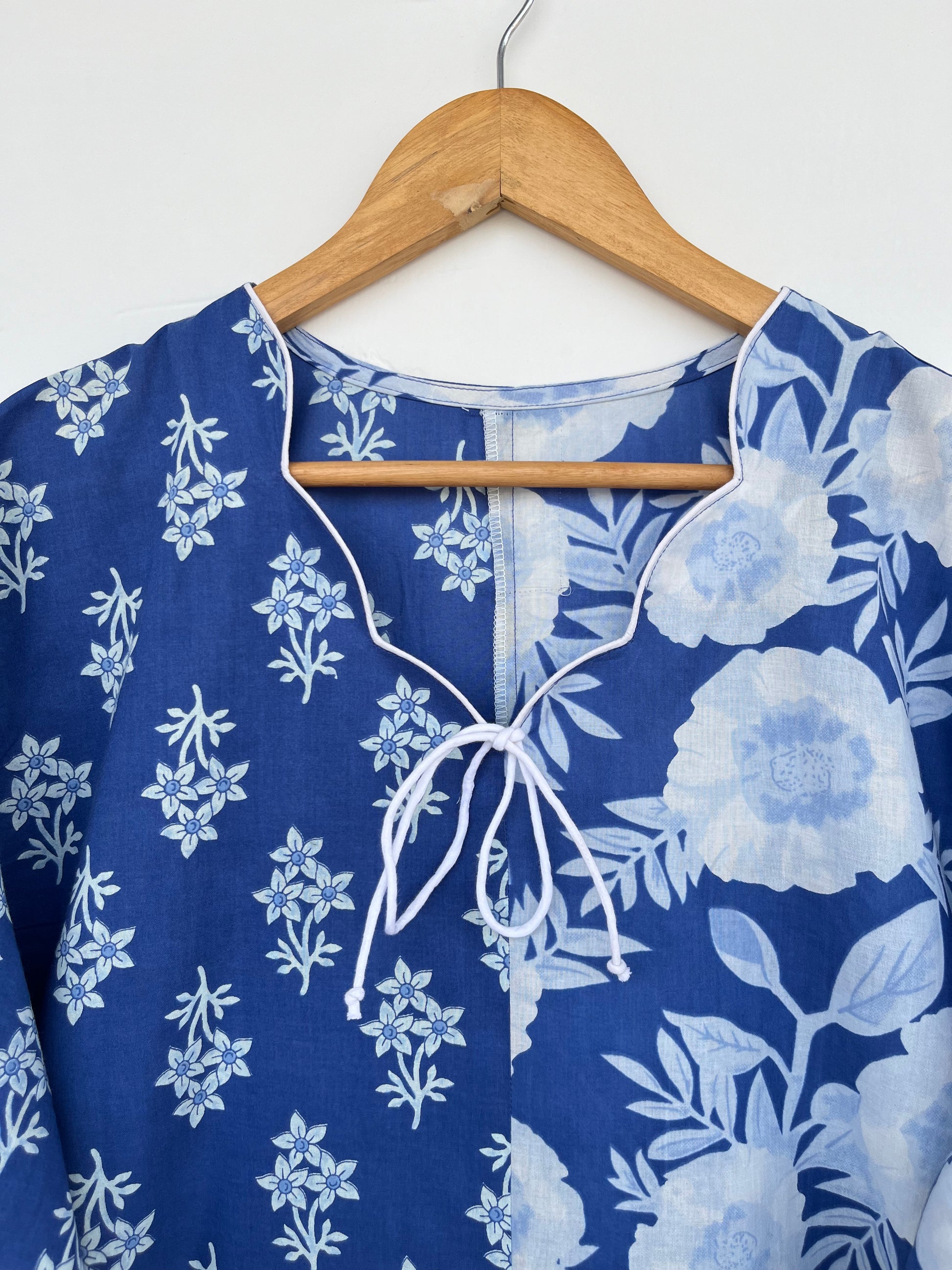 Blue White Floral Resort Vacation Dress | Loose Fit Long Maxi | Summer Boho Outfit