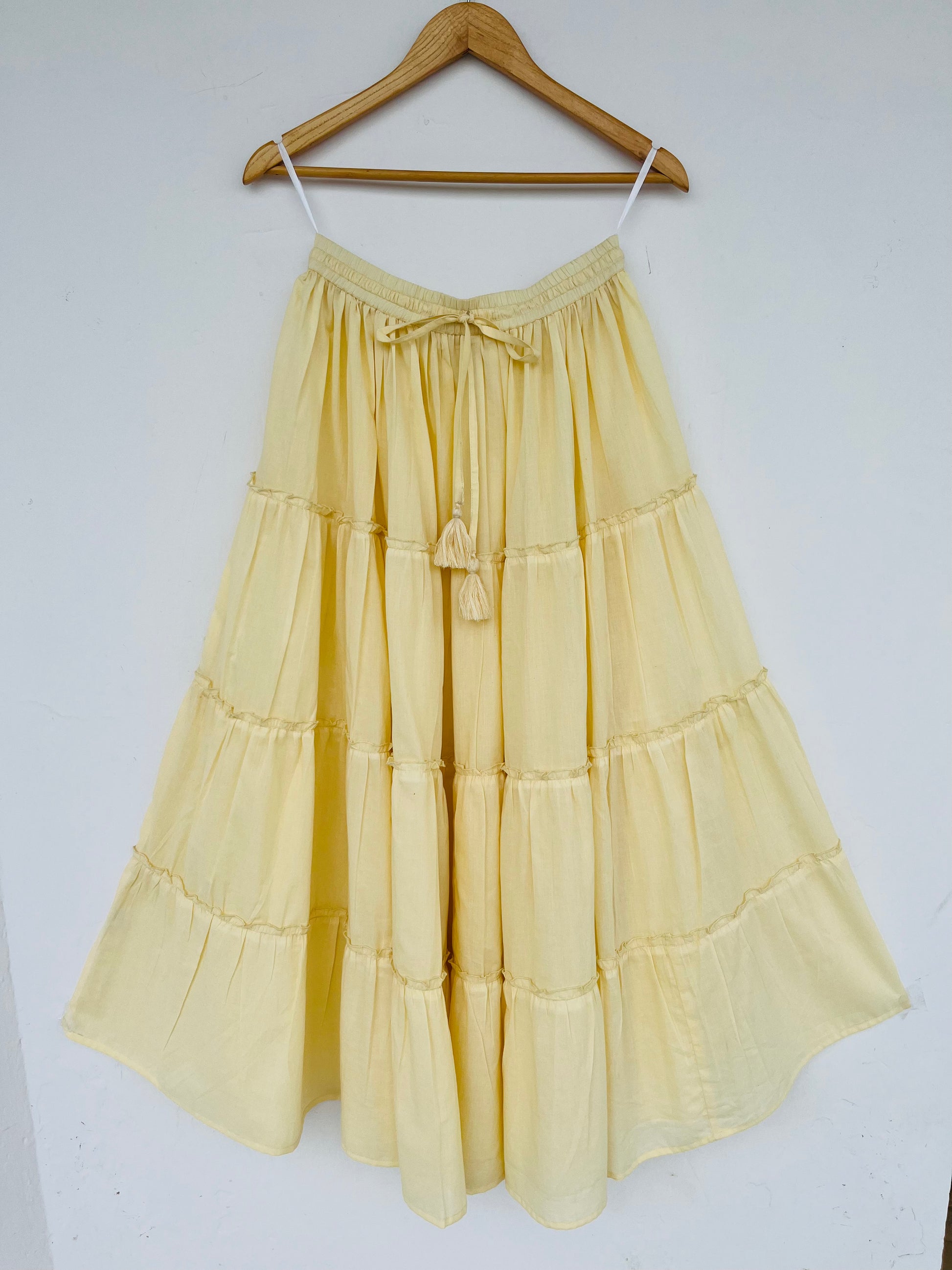 Cotton Tiered Maxi Skirt for Women – Casual Drawstring Summer Skirt