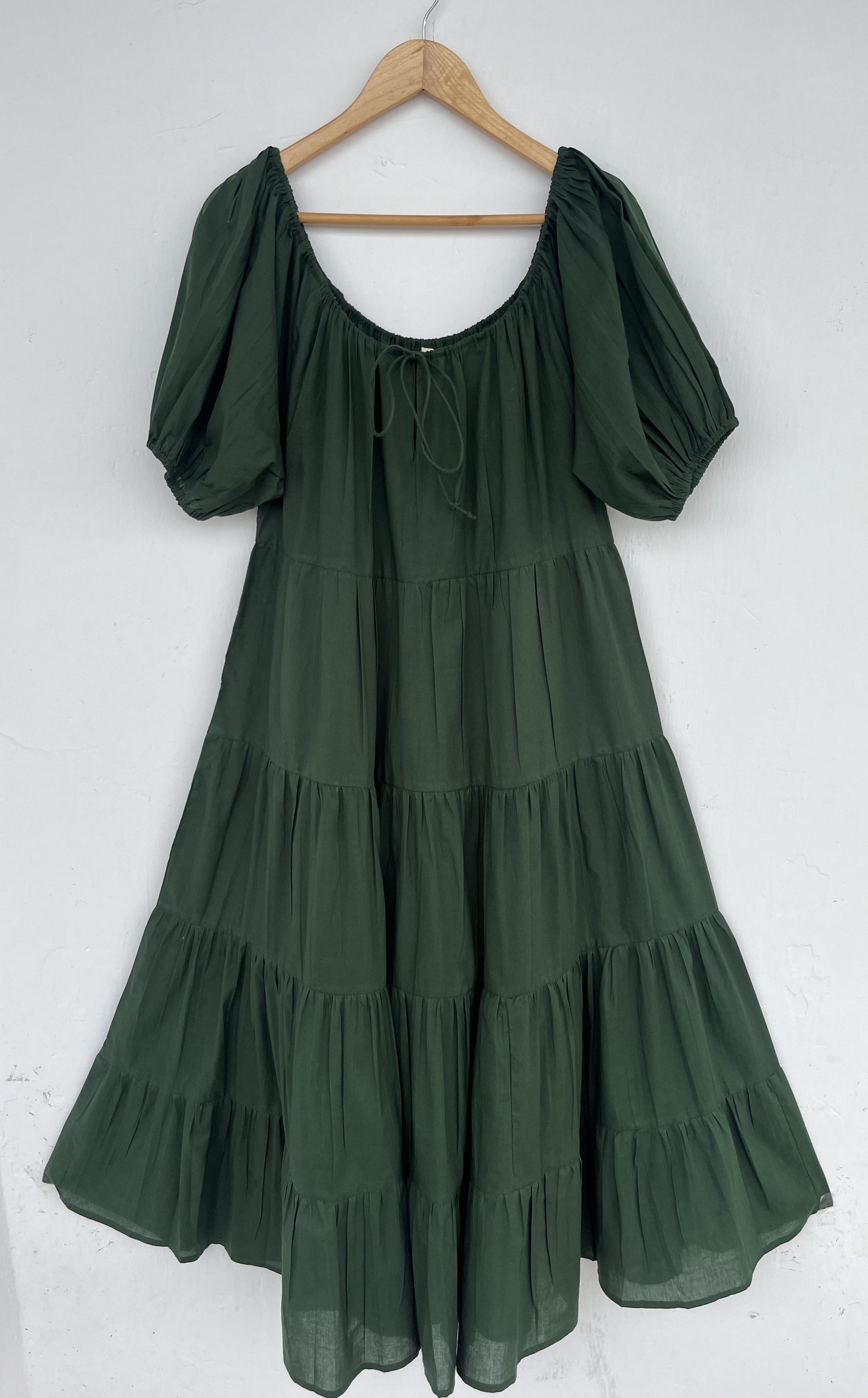 Dark Green Tiered Cotton Long Dress Women | Flared Boho Summer Maxi