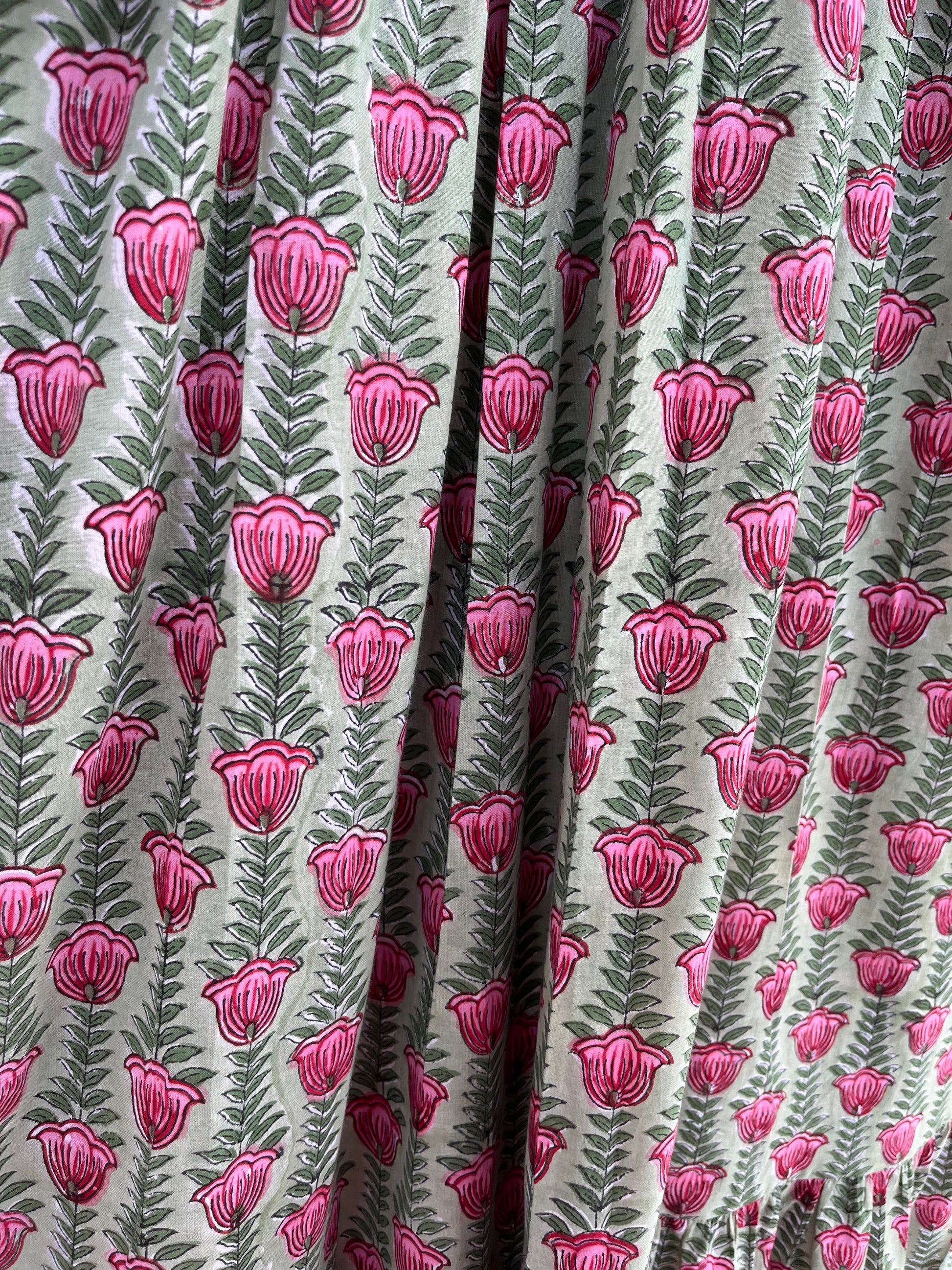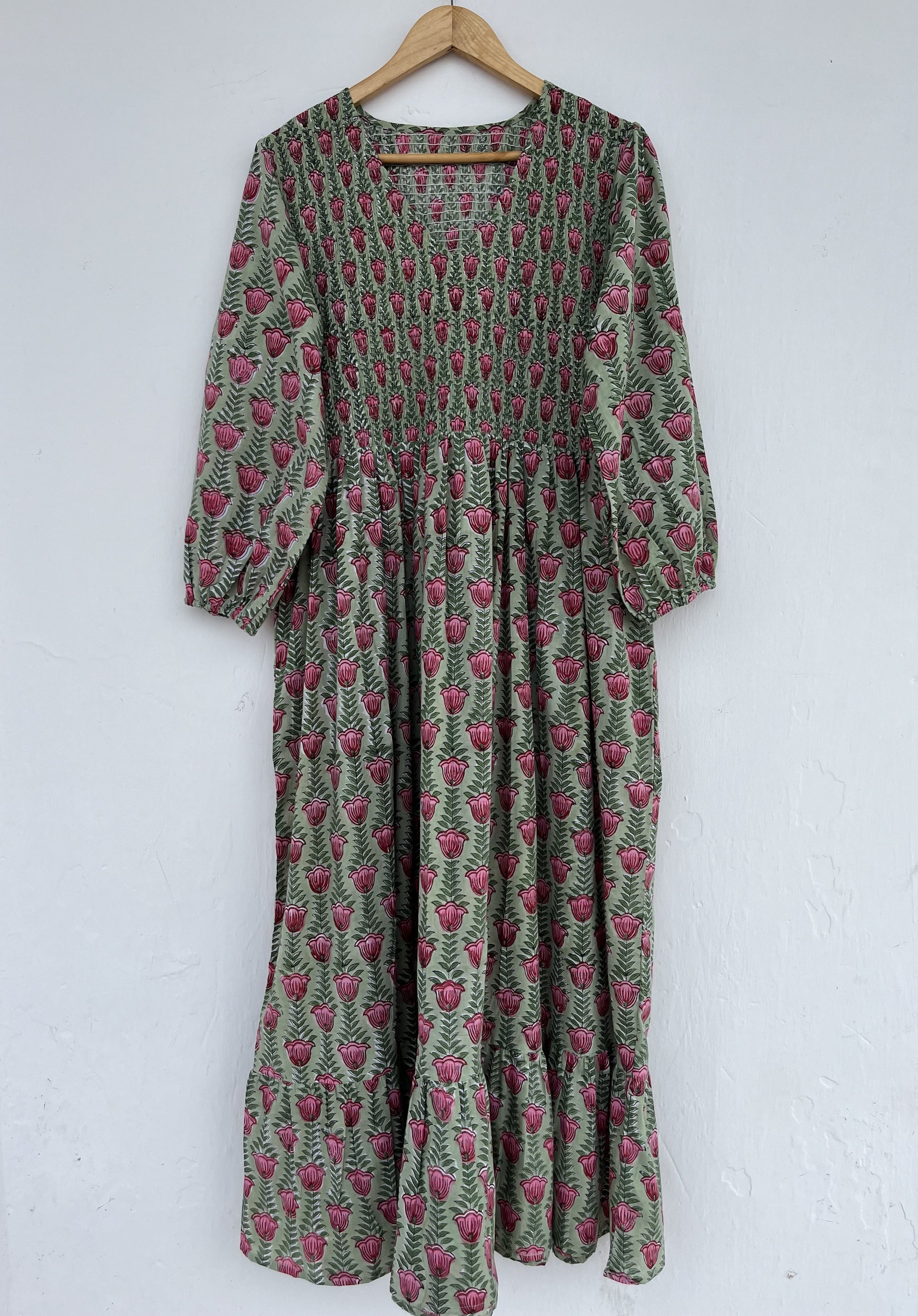 Green Floral V Neck Smocked Cotton Dress | Summer Holiday Dress